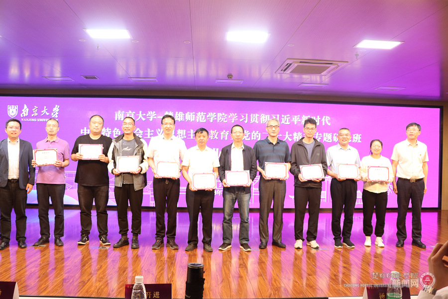 结业仪式上,学校党委委员、组织部部长周开进为全体参学人员颁发结业证书,并作为带队领导,作总结发言。他对南京大学在本次培训中提供的舒适的学习生活环境、顶级的培训师资、量身定制的课程表示衷心感谢。他表示本次培训涉及学科、专业、课程建设,党的二十大精神,党建、意识形态工作,干部领导能力,学校治理能力各方面,内容全面丰富,专家理论水平高,实践经验丰富,让参学人员开阔了视野,明确了发展方向,受益匪浅。他建议各学院、各职能部门在本次培训中与南京大学相关学院、部门建立起来的联系要用心经营发展下去,多学多用,多开展交流合作,不断提升学校的教学管理水平;本次培训也是学校开展学习贯彻习近平新时代中国特色社会主义思想主题教育的重要举措,要把本次培训的成果延展到主题教育全过程中,应用到以后的工作中,让自己的工作有新突破,展现新作风,在推动学校高质量发展中有新作为。